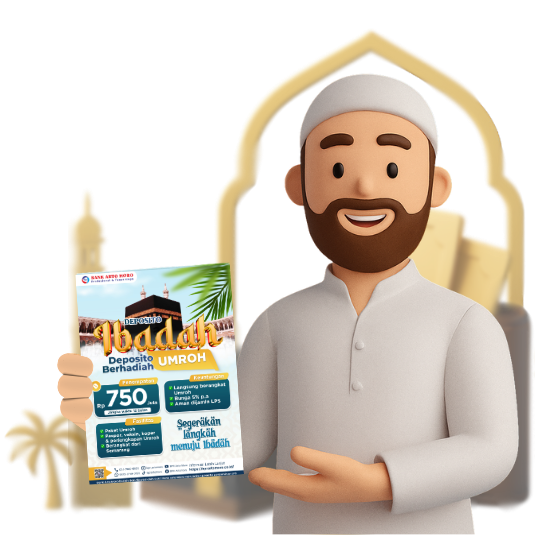DEPOSITO IBADAH adalah simpanan berjangka dengan nominal penempatan dana sebesar Rp750.000.000 (tujuh ratus lima puluh juta rupiah) untuk jangka waktu 12 bulan (satu tahun). Dengan mengikuti program ini, nasabah akan mendapatkan hadiah langsung berupa perjalanan Umrah tanpa diundi, sekaligus memperoleh bunga deposito sebesar 5% per tahun.